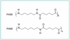 生物基PA56是以可再生資源如玉米、小麥等為原料,通過微生物法制備1,5-戊二胺,再與己二酸聚合而得,各項性能...
