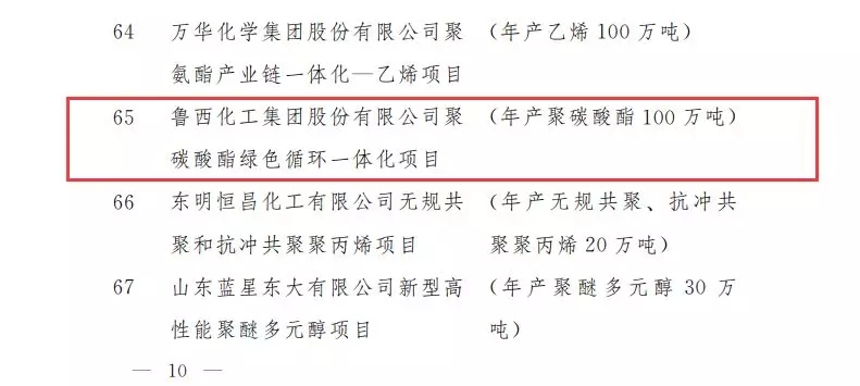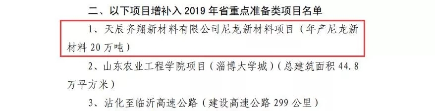 ????????近日,山東省發改委公布了關于調整2019年省重點項目調整的通知,主要涉及項目進出的調整,其中增補了7月25日公布的天辰齊翔100萬噸尼龍66新材料項目入選,而魯西化工100萬噸聚碳酸酯PC項目退出。早在7月23日,山東省發改委發布通知:關于2019年省重點項目中期調整的通知。