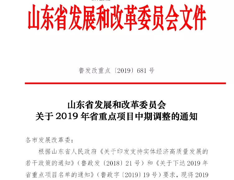 (2019年1月23日山東省重點項目名單)