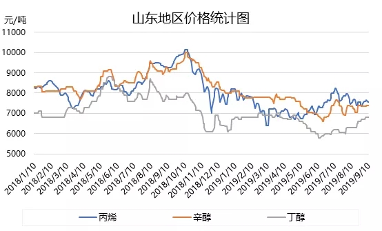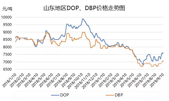 ????????如上圖所示,為丙烯及丁辛醇價格走勢圖,雖然丁辛醇呈現上行走勢,但漲勢趨緩,多是處于消除低價狀態。丙烯近期穩中下行,但在一定程度上緩解了丁辛醇行業的虧損壓力,尤其辛醇行業,目前基本在成本線附近。加之辛醇行業存檢修情況,目前低價已經減少,廠家基本維持在7500元/噸水平。丁醇近期走勢穩健,各廠家報盤基本在6800元/噸自提。雖然對DOP、DBP存成本傳導,但此次利好支撐作用小于苯酐。