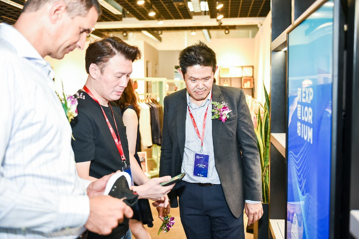 利程坊創(chuàng)新副總裁黃國豪先生(左二)正在介紹RFID技術(shù)的零售應(yīng)用場景