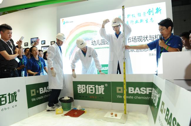 ????????環保性能方面,ETPU兒童專用防護地坪也做到了無毒無味。2017體博會期間,巴斯夫和都佰城進行了跑道鋪設的現場演示,其無毒無味的特性,贏得了大量專業觀眾的好評。在所有的檢測中,ETPU兒童專用防護地坪實現了零VOC、零甲醛,并且沒有有毒揮發性物質。可以說,他們將環保數值做到了極致。