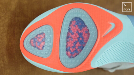 ????????在第一次穿著的時候,可以很明顯地感覺到,腳后跟和前腳掌兩處的緩震小球堆積在一起,高出鞋底平面頂住了腳底,這個時候就需要唱跳 rap 和籃球活動一下,把聚集的小球門踩均勻,以獲得和腳型適配的獨一無二的緩震小球分布。