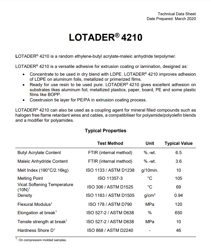 - 阿科瑪 EBA 4210 良好的附著力 層壓板 增粘劑 良好的粘合性 物性表, 阿科瑪 EBA 4210 良好的附著力 層壓板 增粘劑 良好的粘合性 產品參數,阿科瑪 EBA 4210 良好的附著力 層壓板 增粘劑 良好的粘合性 性能表,阿科瑪 EBA 4210 良好的附著力 層壓板 增粘劑 良好的粘合性 出廠報告, MSDS,, 物質安全資料表, UL黃卡,{ SGS報告, RoHS, 食品級認證, NSF飲用水標準, 產品資料, 產品性能, 出廠報告, 原廠原包, 代理商, 熱變形溫度, 熔指數, 流動系數, 抗沖擊性能、沖擊強度, 低溫韌性、低溫抗沖擊性能, 熔體流動系數、熔體流動速率, 加工工藝、加工參數、加工溫度, 歐盟RoHS 德國FDA 美國FDA 日本FDA