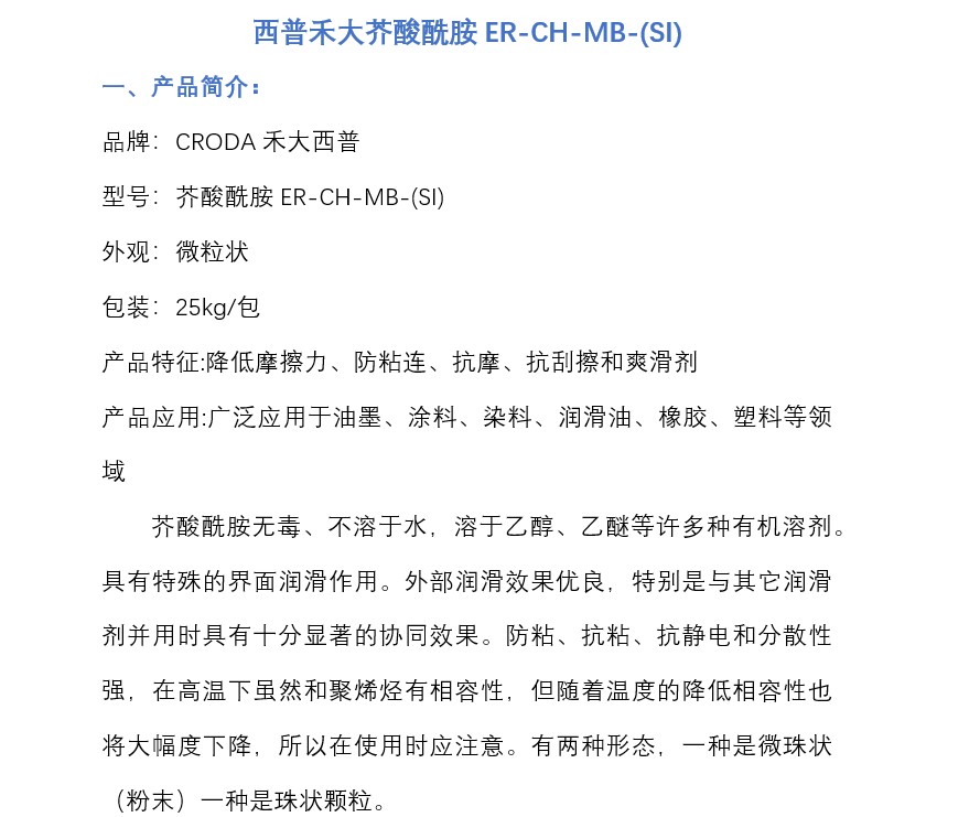 Crodamide ER主要特性:開口劑、爽滑劑、分散劑、抗磨抗污