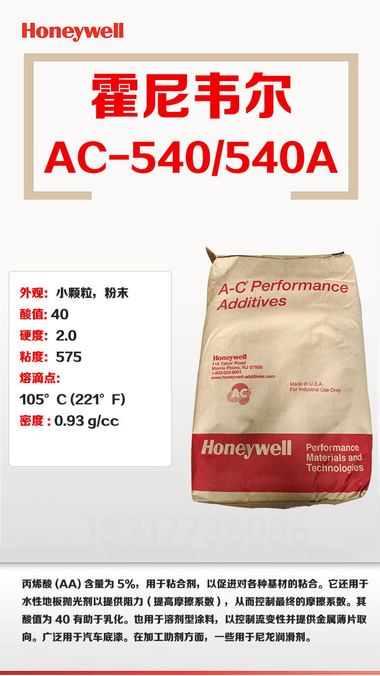 - 霍尼韋爾honeywell A-C540A適合用于尼龍改性材料 乙烯-丙烯酸共聚物 物性表, 霍尼韋爾honeywell A-C540A適合用于尼龍改性材料 乙烯-丙烯酸共聚物 產品參數,霍尼韋爾honeywell A-C540A適合用于尼龍改性材料 乙烯-丙烯酸共聚物 性能表,霍尼韋爾honeywell A-C540A適合用于尼龍改性材料 乙烯-丙烯酸共聚物 出廠報告, MSDS,, 物質安全資料表, UL黃卡,{ SGS報告, RoHS, 食品級認證, NSF飲用水標準, 產品資料, 產品性能, 出廠報告, 原廠原包, 代理商, 熱變形溫度, 熔指數, 流動系數, 抗沖擊性能、沖擊強度, 低溫韌性、低溫抗沖擊性能, 熔體流動系數、熔體流動速率, 加工工藝、加工參數、加工溫度, 歐盟RoHS 德國FDA 美國FDA 日本FDA