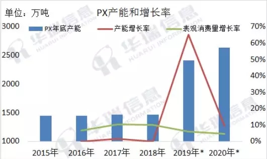 PET,有一個很長的學名,聚對苯二甲酸乙二醇酯,是由PTA(精對苯二甲酸)和MEG(乙二醇)合成的聚酯切片。PTA來源于石油產品PX(對二甲苯),PX之前產能一直處于不足狀態,但2019年PX的產能迅猛增長,從產能不足到最近甚至未來幾年的產能過剩。這預示著今后將會有更多的PET新料進入市場,化工產能將成為PET的重要影響因素。
