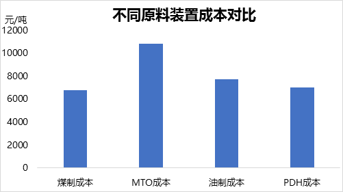 ????????我們在從不同裝置生產(chǎn)聚丙烯成本對比來看:
