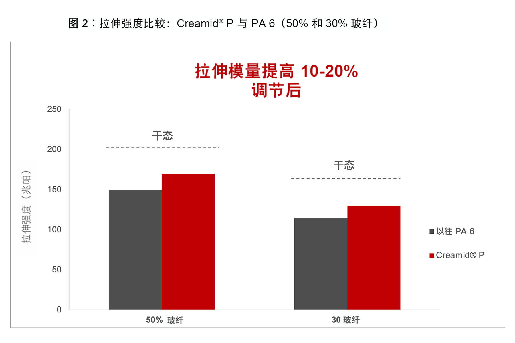 ????????新業(yè)務(wù)開發(fā)ETP總監(jiān)Markus Krippner 指出:“以往,PA 6化合物由于具有較高的吸水性而無法勝任某些結(jié)構(gòu)性應(yīng)用,而現(xiàn)在Creamid P 系列的化合物明顯改善了濕態(tài)的拉伸特性,因此能夠達到這些應(yīng)用的要求。同樣的,此技術(shù)也適用于優(yōu)化聚酰胺66化合物的性能。”
