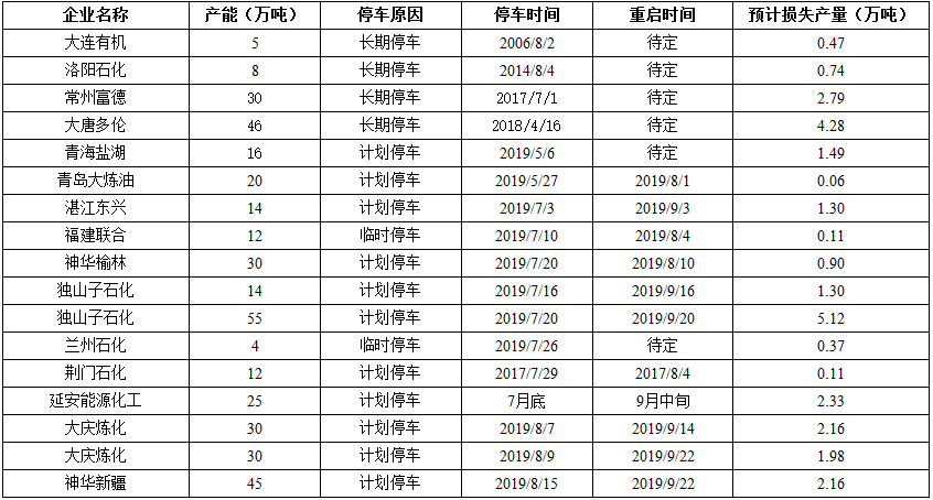 8月份國(guó)內(nèi)聚丙烯計(jì)劃裝置檢修匯總