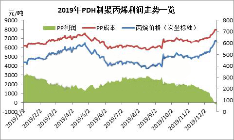 2019年12月份,對于聚丙烯這個產品來說,注定是不平凡的一個月份。聚丙烯價格跌破8000元/噸大關并一路下行、丙烷脫氫制聚丙烯利潤幾乎為負。