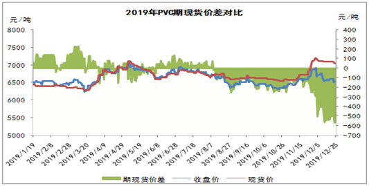 近日,受市場供應(yīng)面有一定提升以及下游接貨不佳影響,PVC行情轉(zhuǎn)入跌勢。PVC期貨偏弱震蕩,對現(xiàn)貨市場價格形成一定打壓,市場價格承壓下跌。此外,期現(xiàn)貨價差再創(chuàng)新高,最高達570元/噸左右。由上圖可以看出,進入2019年四季度,PVC期限價差逐漸擴大,基本維持在500-600元/噸之間,而期貨價格遠遠低于現(xiàn)貨價格,超出正常范圍。因此單從期現(xiàn)價差方面看,后期將逐漸修復(fù)步入正軌,現(xiàn)貨大幅下降的可能性偏大。
