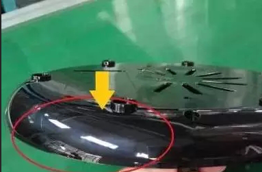 產(chǎn)品表面白霧,從視覺角度來講,它呈現(xiàn)的是白色狀,所以在白色產(chǎn)品時亦不明顯,黑色高光最為明顯,如圖所示,該產(chǎn)品為PP材料生產(chǎn),周邊表面呈現(xiàn)出大大小小的白色斑紋,像云霧般的癥狀,這里歸類為白霧。